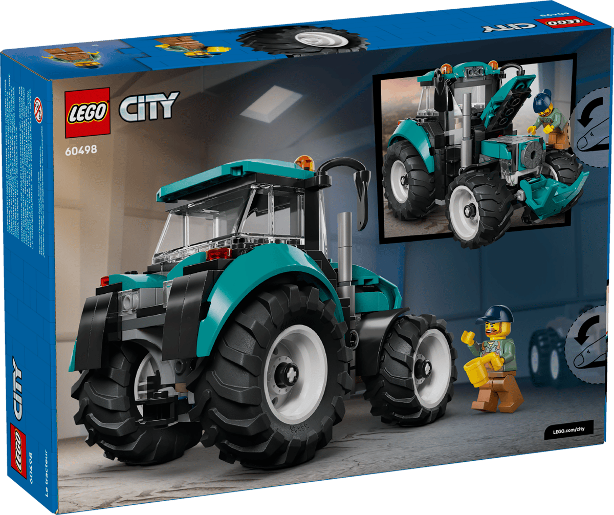 Power up kids’ imaginations with this LEGO® City Farm Tractor (60498) toy building set for ages 6 and up. This detailed farm vehicle toy comes with a fresh teal color scheme and 4 large rubber tractor tires. Young builders can remove the cab roof to pop in the farmer minifigure and open the hood to inspect the engine before heading out on exciting countryside adventures. This buildable LEGO City tractor makes a great birthday or holiday gift for 6-year-old boys, girls and kids who love toy farm vehicles and hands-on imaginative play. Add this set to others from the LEGO City range (sold separately) for even bigger farming adventures. Kids can enjoy intuitive building with this LEGO Tractor playset in the LEGO Builder app, zooming and rotating with 3D instructions, while saving and tracking progress. Set contains 204 pieces.
