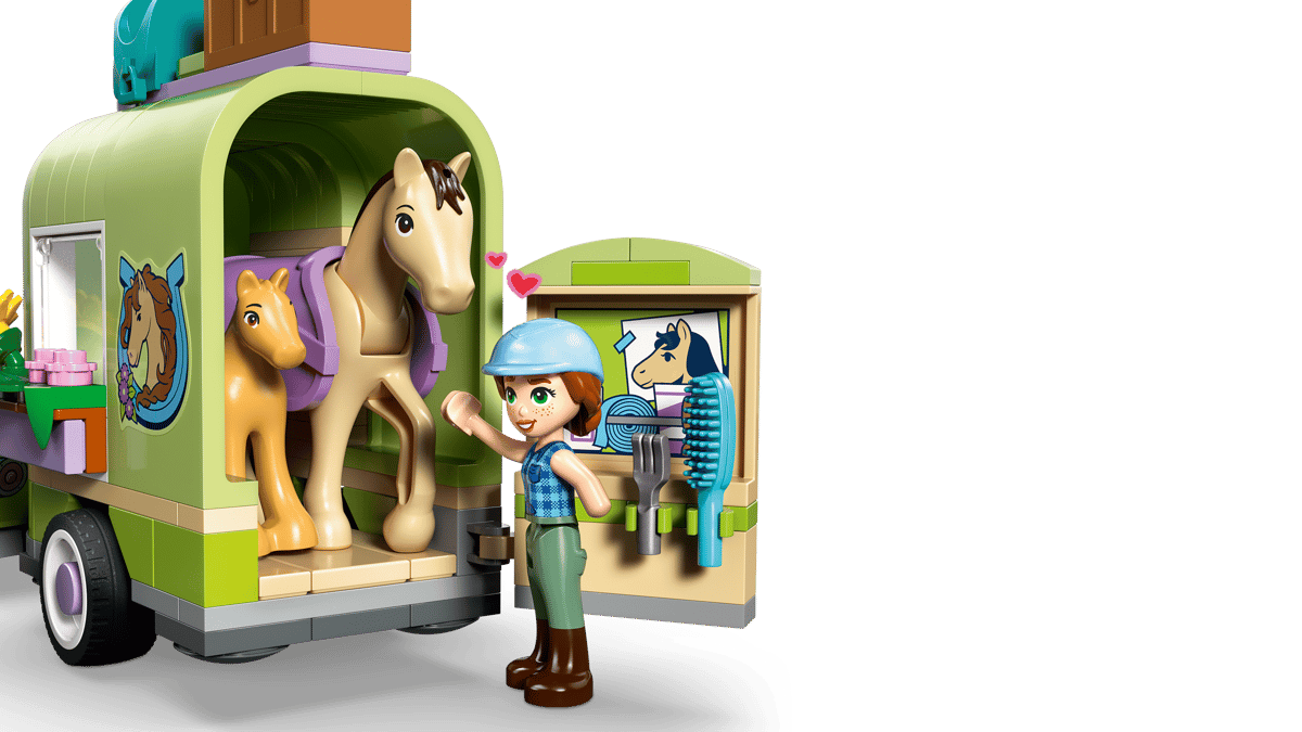 Let kids ages 7 and up enjoy hours of animal care role play with the LEGO® Friends Horse & Baby Foal Trailer building toy (42695). This set for horse lovers includes 2 minidolls plus a horse, foal, puppy and frog figures. Explore every aspect of animal care using the detailed accessories to groom the horses, transport them in the trailer and ride the horse over the jump. There are lots of different ways for girls and boys to play with this animal playset. They can create stories for Autumn and Matilde as they drive the car. Open the trailer to greet the horse and foal. Then saddle up the horse, ready for a ride. The model comes with a small side build with a picnic area, signpost, lake and a fence to jump over. This set makes a cool gift for horse lovers or a fun birthday gift for kids who love animal playsets. And with the LEGO Builder app, kids can enjoy intuitive building as they can zoom in and rotate sets using 3D instructions, save sets and track progress. Set contains 279 pieces.
